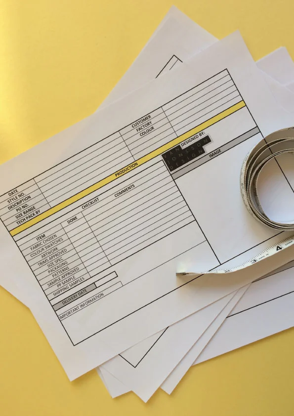 One of the common questions I get asked is how to set out a specification sheet, or a technical pack, and although some of you know what information to put in them, it's sometimes the lay out that seems to eat up your time.