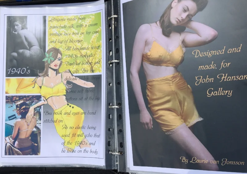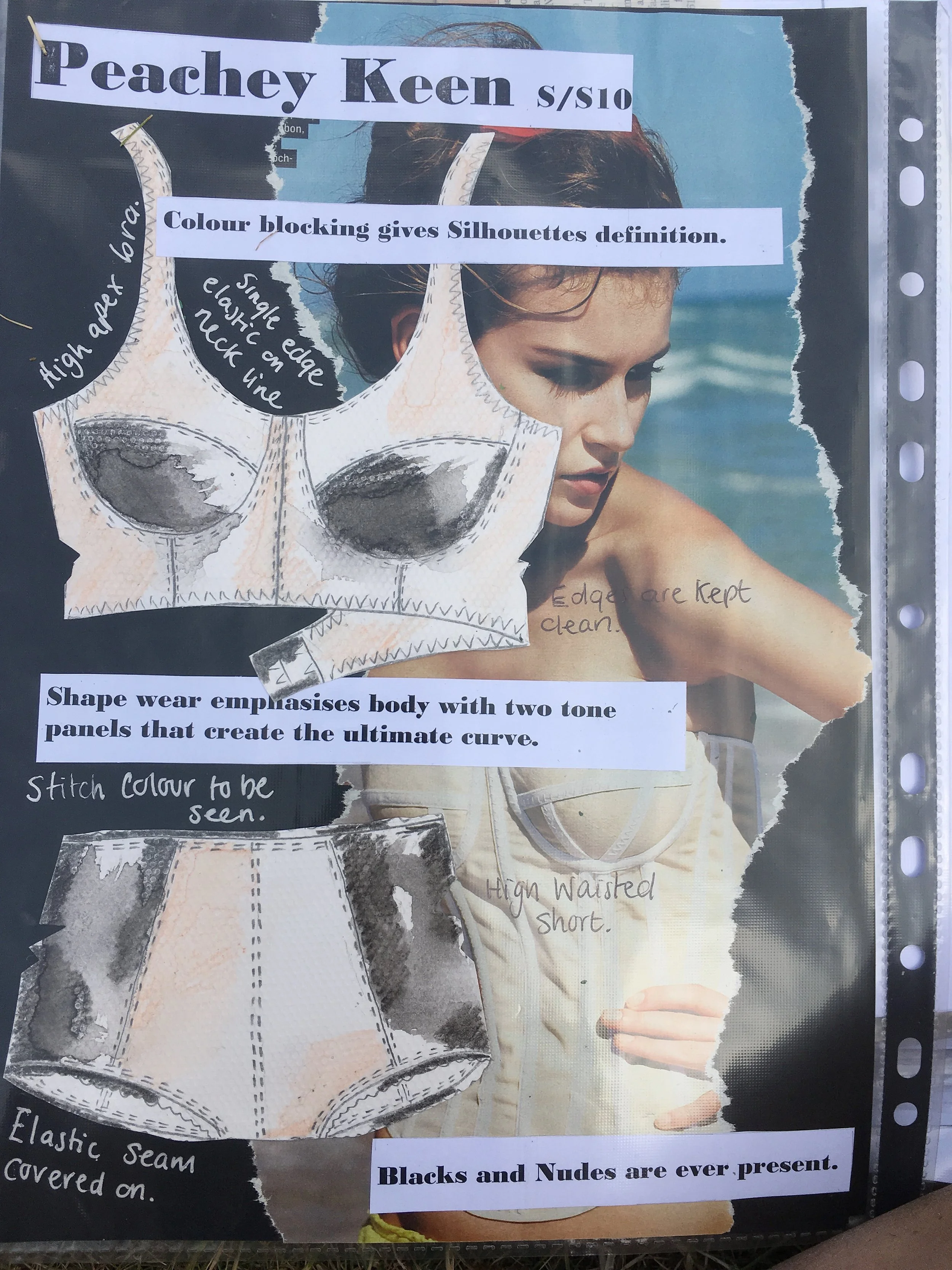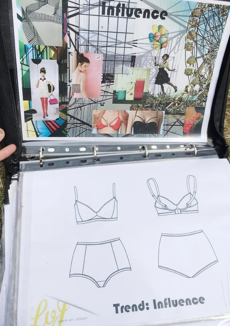 At the start an overview, so this will be 10-12 of my best images including sketches, a trend board, an inspiration board, CAD drawings of lingerie and if possible on the corresponding page the finished garment so they see what it look likes start to finish, a press piece and a couple of pieces tailored directly to that company.
