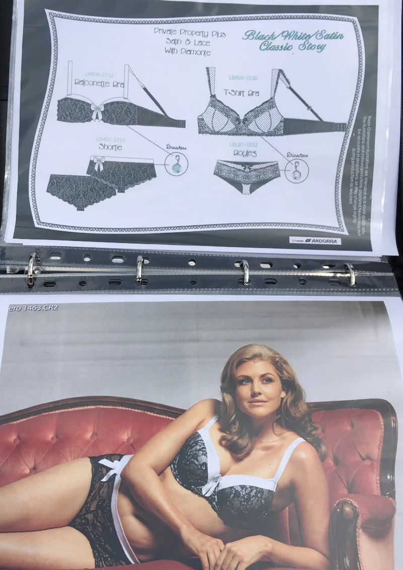 Then on the following pages everything is date/season ordered and in categories so lingerie/swimwear/kidswear and also extra categories such as Press and also a Technical section. The technical section section would include hand grading, computer grading, tech pack layouts and spec sheets. At the start of my career this would more important than now as having been in the industry so long it's a given that I should know all that stuff, but when I was first starting out I needed to portray that I knew and understand that side of the industry. Now the technical side would include specialised sections such as knowledge in the bigger cup section, and grading of complicated lingerie designs, basically anything that includes specialised knowledge that not everyone would have.