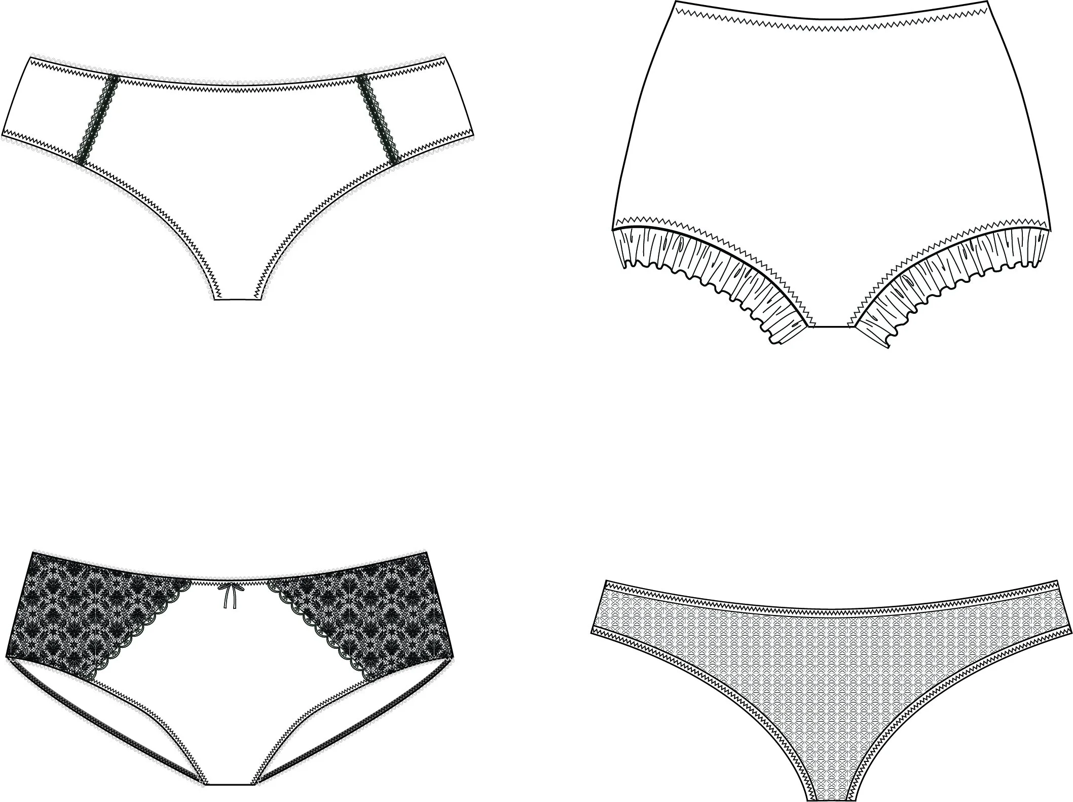 The technical drawings of briefs, consist of four briefs, bikini, a high waisted a tanga and hipster costs £10