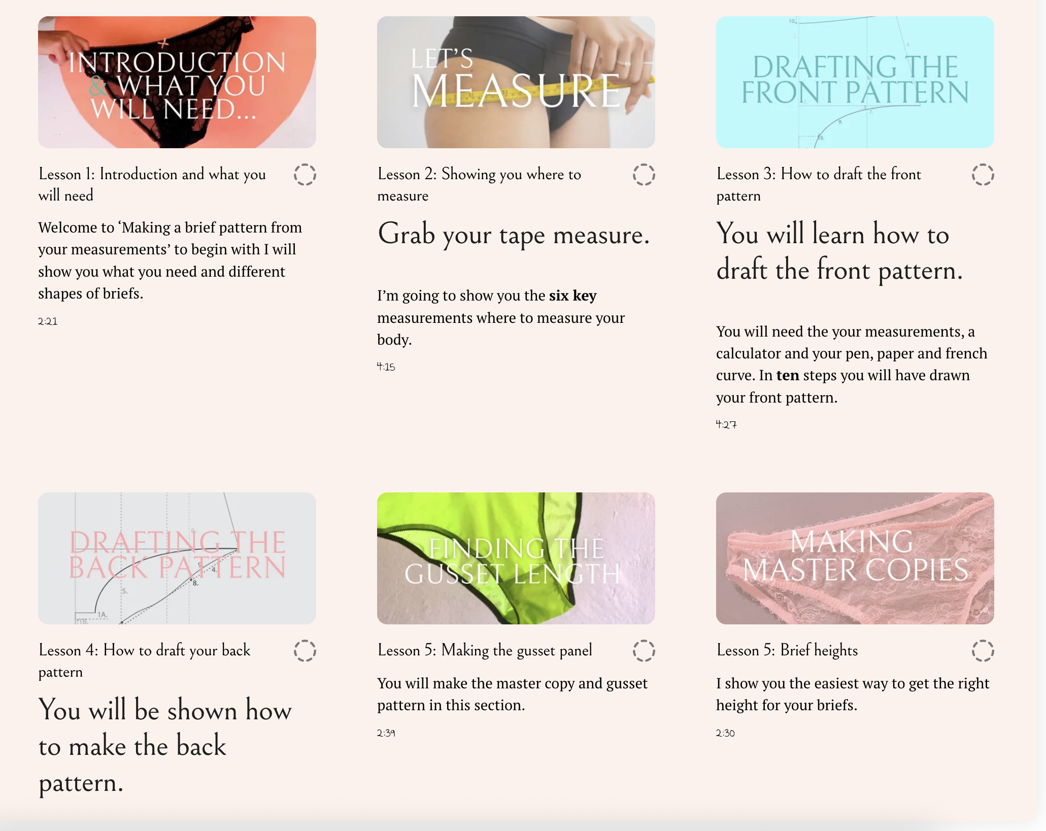 “Learn the foundations of lingerie design, one beautiful brief at a time.”