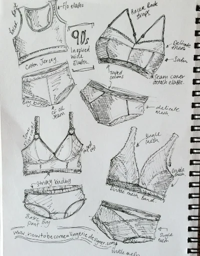 For those heading to lingerie shows this January be sure to keep a look out for those wide-bands. A nostalgic memory about wide bands (I wore so many girl boxers by Topshop during the Nineties - irrespective of the look that it gave to the love handles!!) took Sketchbook Sunday a nineties wide band twist.
